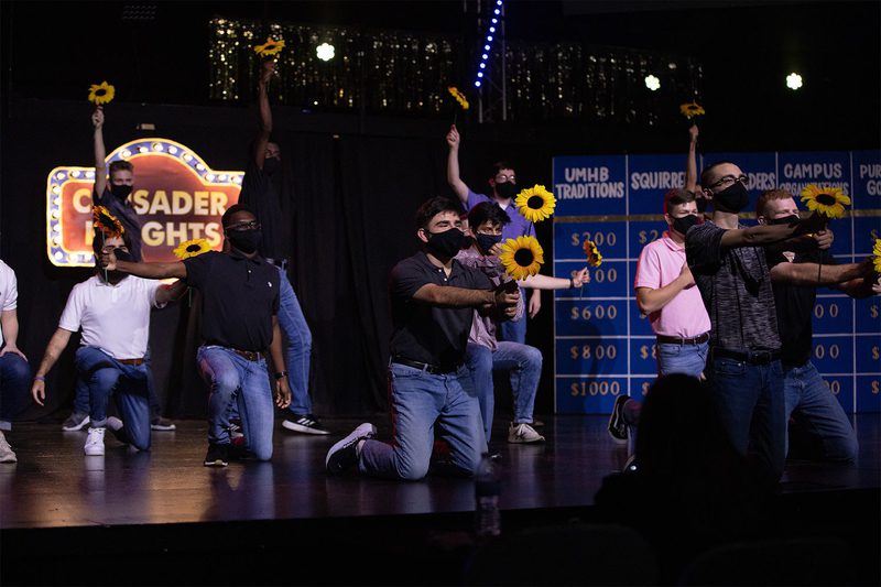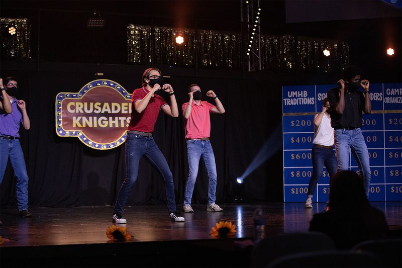 The Crusader Knights tradition, which began in 1993, features male contestants from various campus organizations, residence halls, and classes who showcase their skills in hopes of being dubbed Mr. Crusader Knight by UMHB President Randy O’Rear. Contestants were judged on three separate elements: interview, video, and spotlight.
