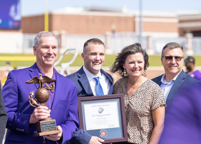 In the spring of 2021, Henderson was selected for the Platoon Leaders Class Program, an undergraduate commissioning program that allows full-time enrolled college students to pursue a commission in the U.S. Marine Corps without interrupting the academic school year. He attended Officer Candidates School the past two summers in Quantico, Virginia. Throughout the six weeks of training, he distinguished himself and ultimately finished first over 223 other graduating candidates from Lima Company and was selected as their honor graduate. Though hundreds of candidates from across the country trained at OCS this summer, Henderson is one of seven to be recognized with The Commandant’s Trophy.